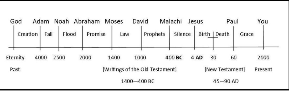 Note: The timeline above includes the events that we will be studying in the Bible. Interestingly enough, most cultures use this dating system with BC and AD. Here, B.C. represents “Before Christ” and A.D. represents “Anno Domini”, meaning in the year of our Lord. So all of history is dated surrounding the life of Jesus Christ.